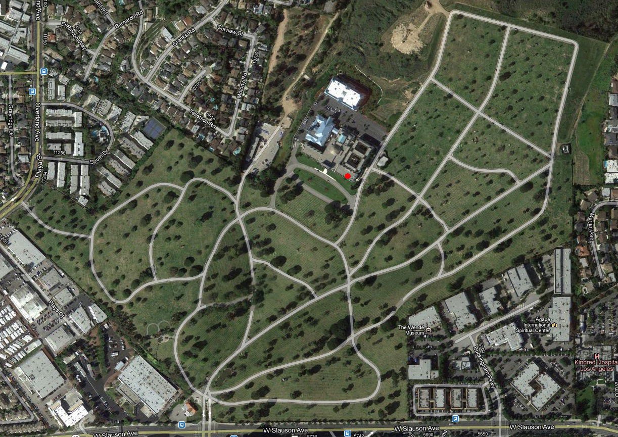 Main Mausoleum, Room 7, Crypt B1; Enter the mausoleum and turn to the right, proceed down this corridor which is lined with side rooms on either side, Room 7 is on your right (3rd one, I believe), John’s crypt is on your left as you look in the room, second space down from the top, two spaces above Fred MacMurray.