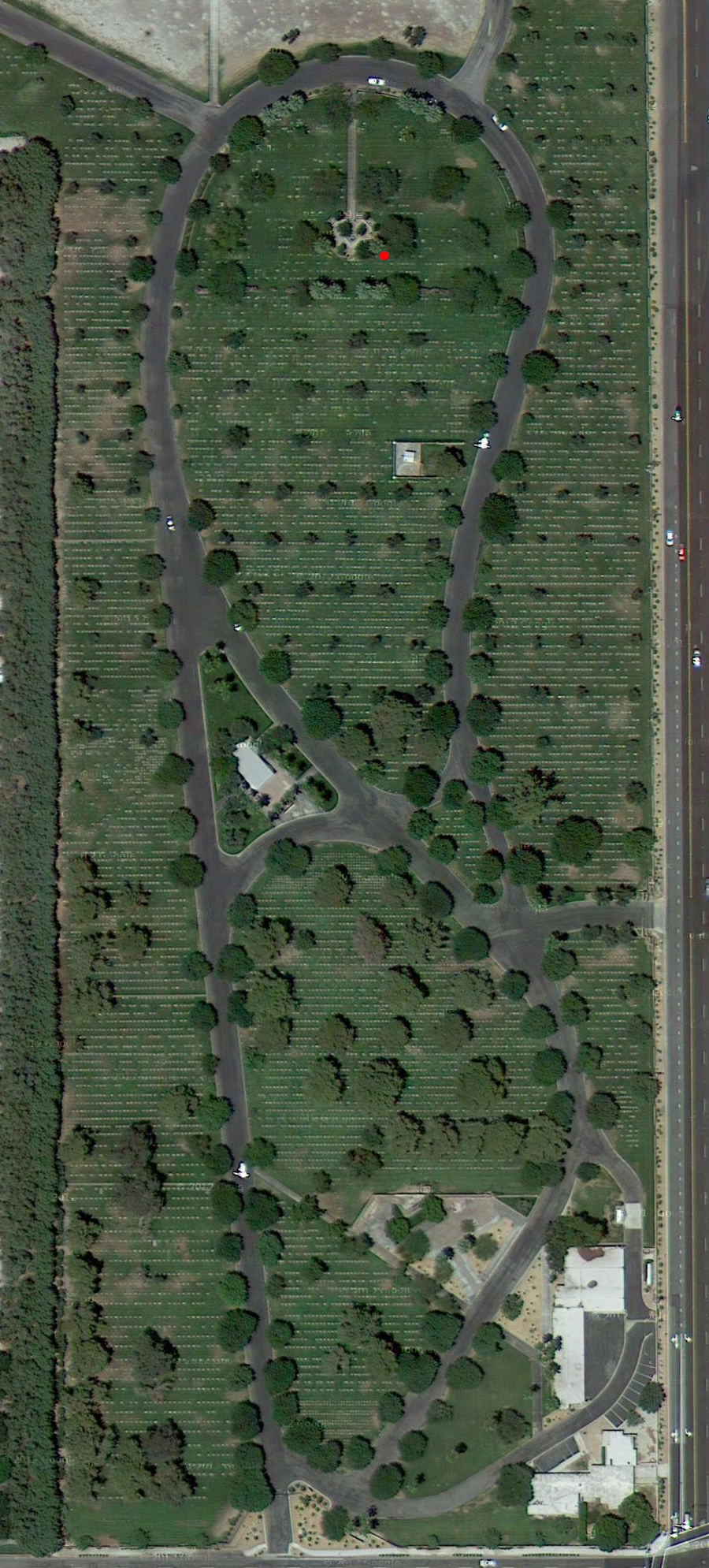 Section B-35, #294; At the north end (back) of the cemetery, on the southwest edge of a large niche garden.
