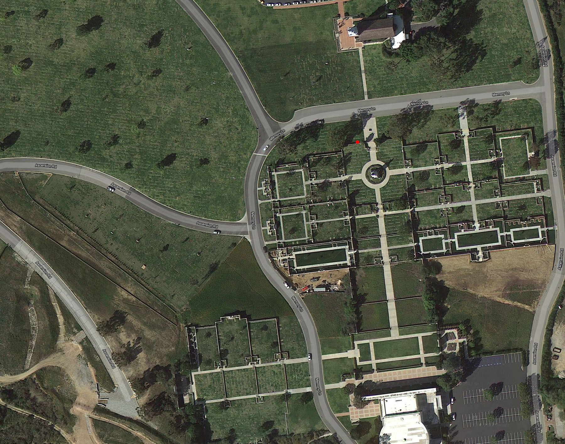 Courts of Liberty, George Washington Section, Court of Valor, Lot 5512; Just to the right (west) of the northern entrance to the Courts of Liberty, before you go up the first set of steps, Buster is buried 7 spaces to the right of the sidewalk as you are facing the Washington statue, right along the wall.