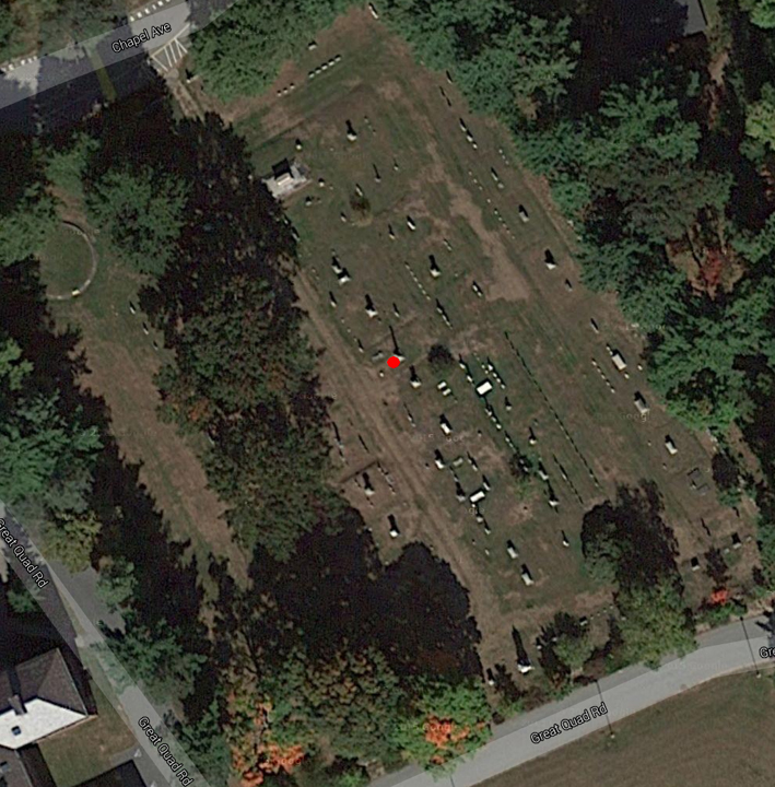 Enter the small cemetery from Chapel Ave. and walk up (south) the central “road.” Harriet’s large, reddish cross marker is on your left just past halfway up.