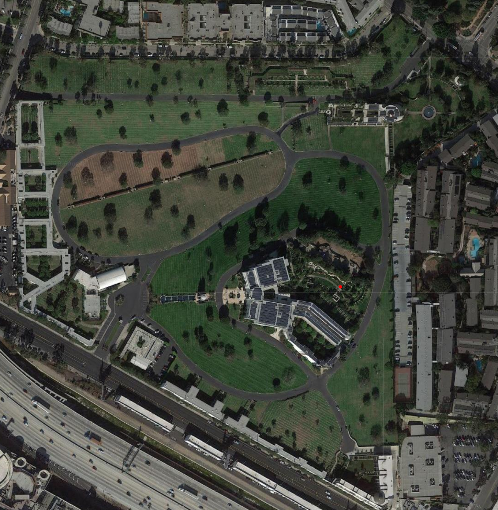 Garden of Solomon, Block 4, Space 10 – Behind the main mausoleum is a lovely garden section with water features and stonework. From the road behind the mausoleum, walk the path into this section over the first of 2 small footbridges. Leonard is buried immediately on the right after the first footbridge.