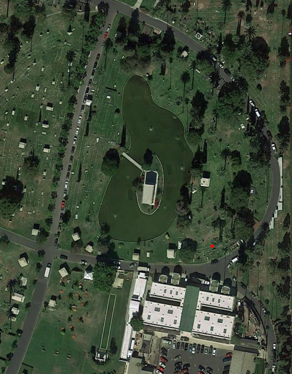 Garden of Legends – At the south end of the lake, Eddy’s large, black family marker with the rounded stone can be found 3 rows north of the street, across from the mausoleum entrance. Nelson is buried directly in front of this marker, next to his mother.