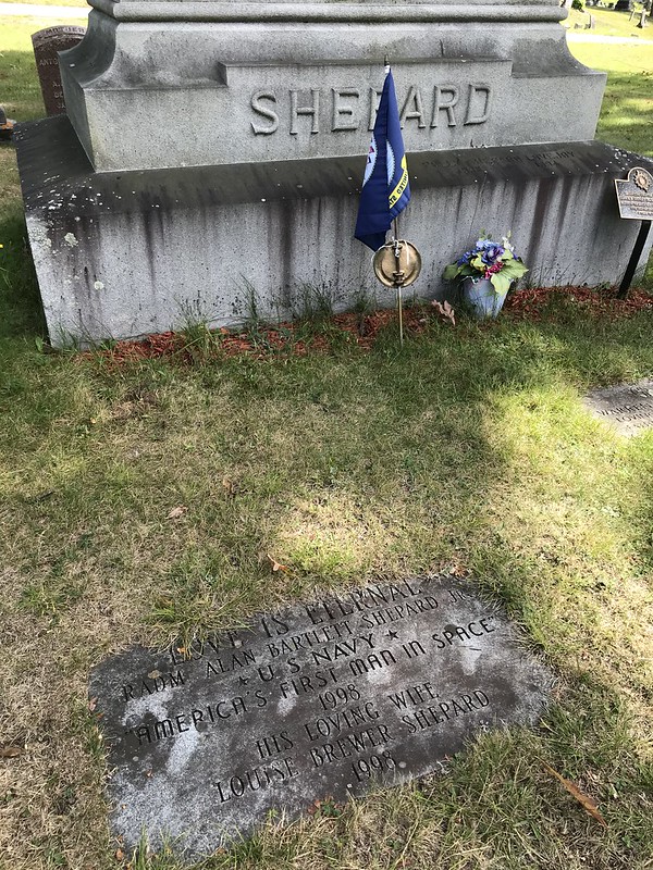 Though his ashes were scattered, there is a memorial cenotaph for Alan and his wife at the Shepard family plot in Forest Hill Cemetery in Derry, NH. The plot can be found near the intersection of Eastman Ave. and Shepard Ave. Alan’s marker is located behind (north of) the large SHEPARD monument.