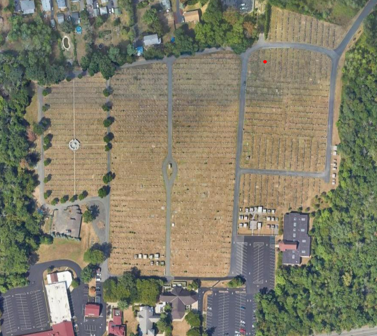 Lordes Section, Range 4 – Tito is buried in the northeastern corner of this section, just 4 ranges (north/south rows) east of the street, even with the green “3C” marker. His marker faces east.